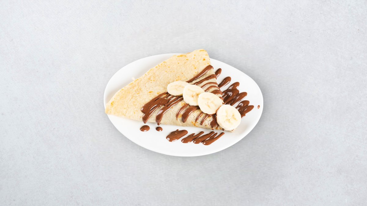 2 palačinke, Nutella, komadići banane, preljev od čokolade *slika je simbolična