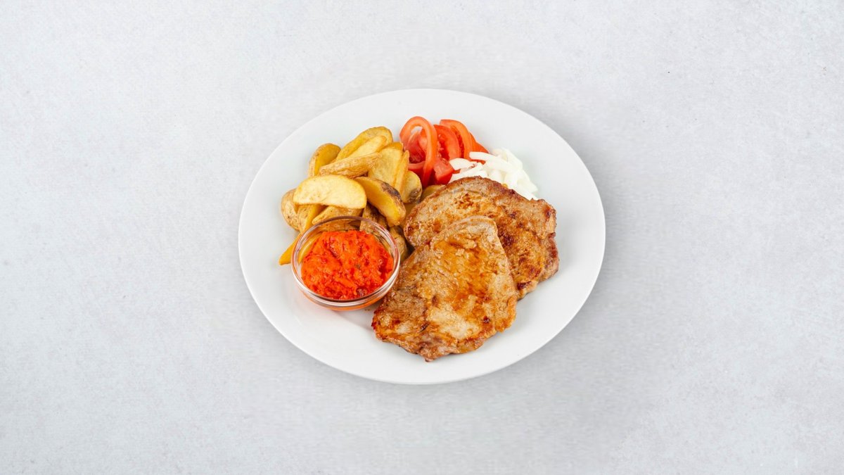 Teleći medaljoni u umaku od gljiva, svinjski lungić sa žara, puretina na bečki, kroketi, šampinjoni sa žara, pekarski krumpir
