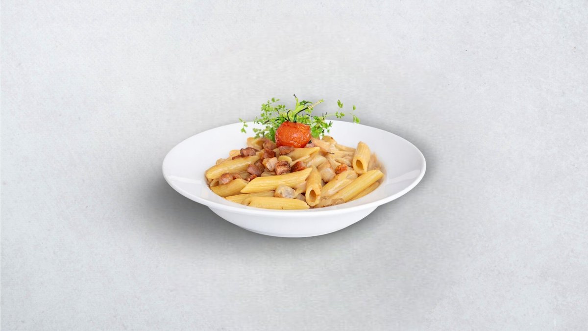 Pileći file sa žara, hrskavi guanciale, grilani šampinjoni, zelena salata, mayo–senf–origano dresing , rastopljeni sir scamorza