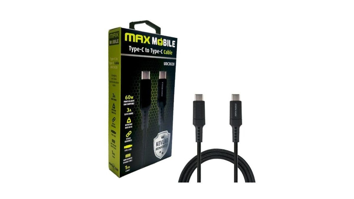 MAXMOBILE DATA KABEL TYPE C-TYPE C UDC3028 KEVLAR BLACK QC 3A 1m