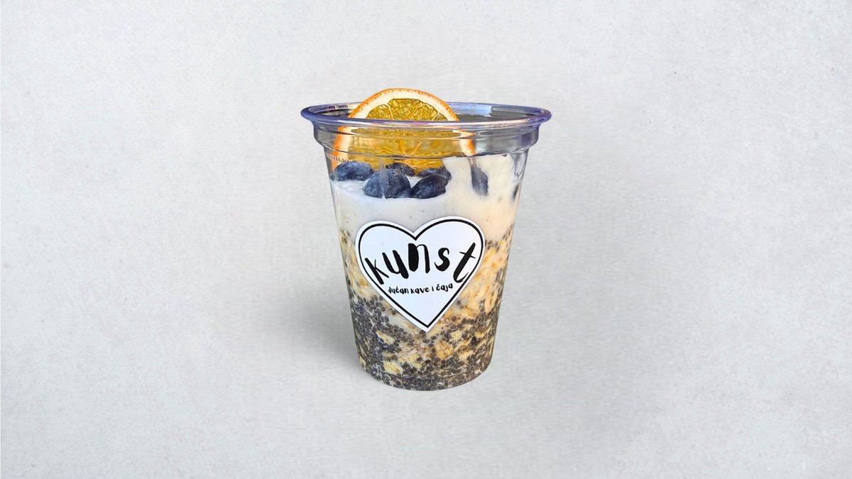 Zobene pahuljice, chia sjemenke, biljni napitak, biljni jogurt, borovnice