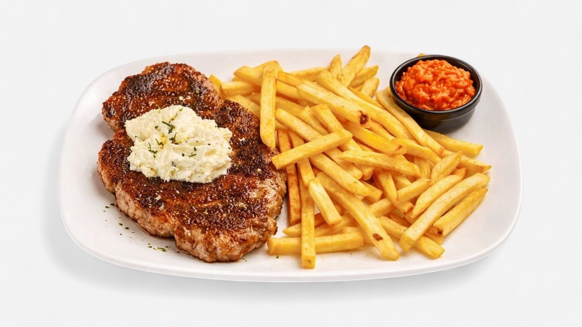 Pljeskavica s kajmakom i pommes frites 🍖
