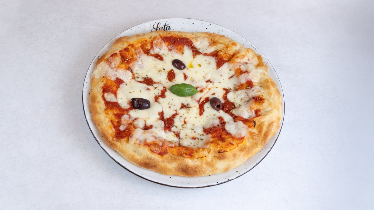 Umak rajčica, mozzarella fior di latte, kalamata masline, origano, svježi bosiljak