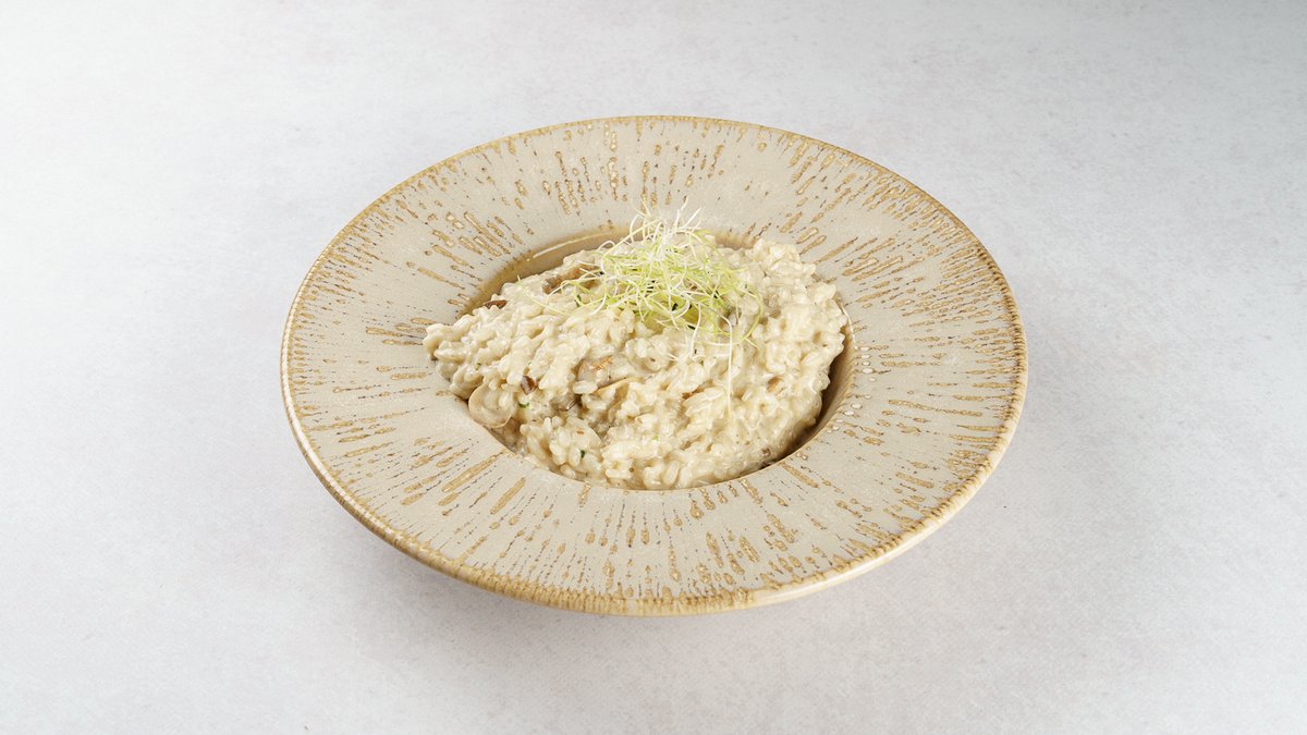 Riža, šampinjoni, bukovače, šumske gljive, vrhnje, temeljac, maslac, grana padano, začini