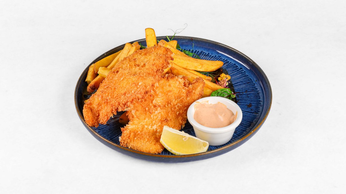 Pohana pileća prsa, lepinja, pomfrit ili lađice *slika je simbolična