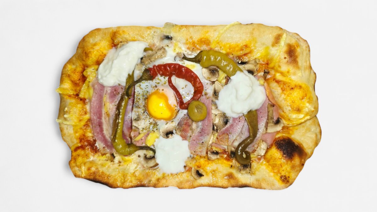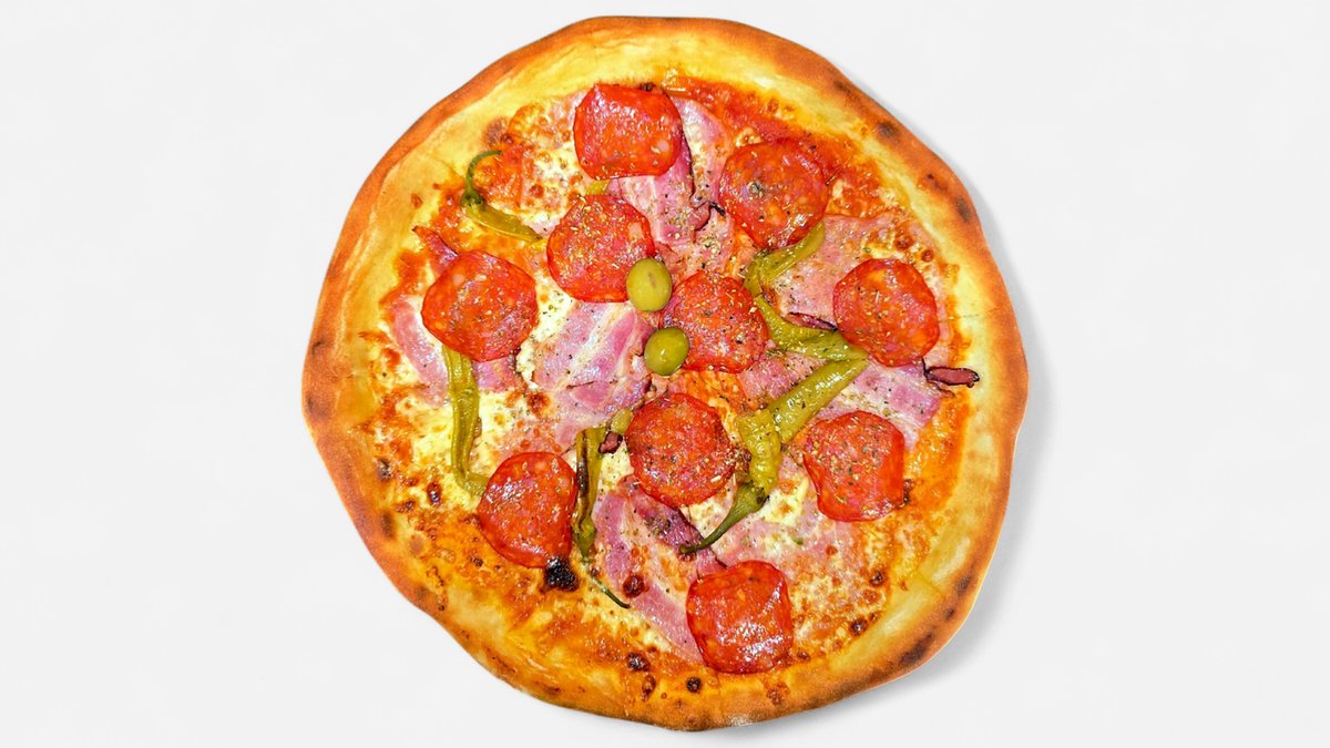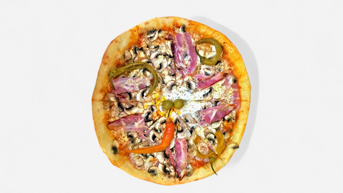 Umak od rajčice, sir, šunka, špek, jaje, gljive, feferoni