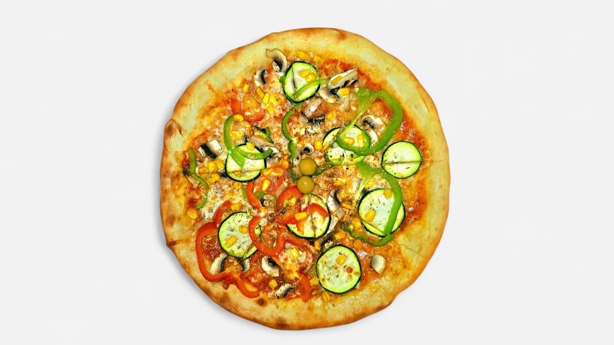 Umak od rajčice, sir, gljive, paprika, kukuruz, tikvica, cherry