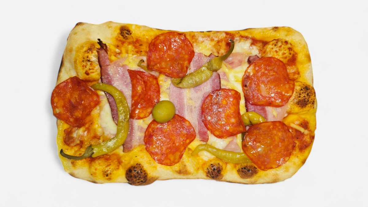 Džepna pizza 25x12 cm Umak od rajčice, sir, šunka, pikantna salama, feferoni