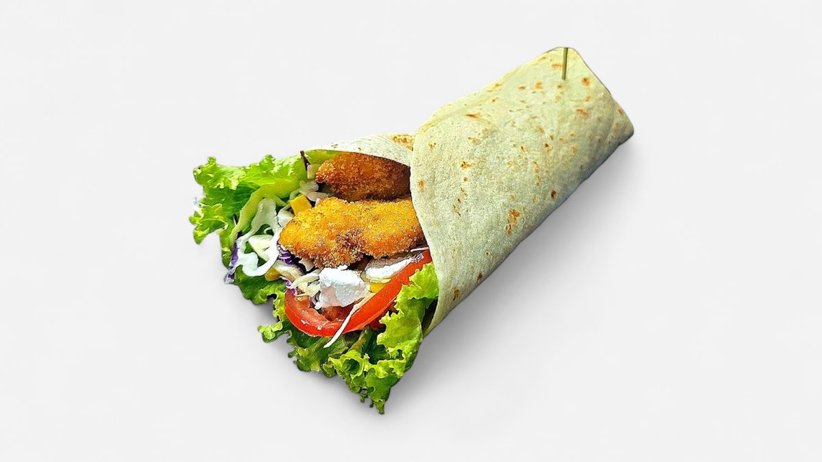 Komadići pohane piletine, zelena salata, cherry rajčica, feta sir, kukuruz, kiseli krastavci, dresing *slika je simbolična