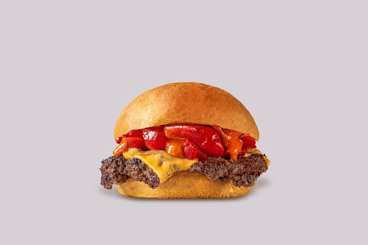 100% 'smash' junetina iz lokalnog uzgoja (225g), sir, jalapeño papričice, przeni luk, spicy mayo *moguće je izbaciti sastojke, ali ne i dodavati nove Spicy burger alergeni: -Gluten -Laktoza -Jaja -Može imati orašastih plodova u tragovima -Sezam