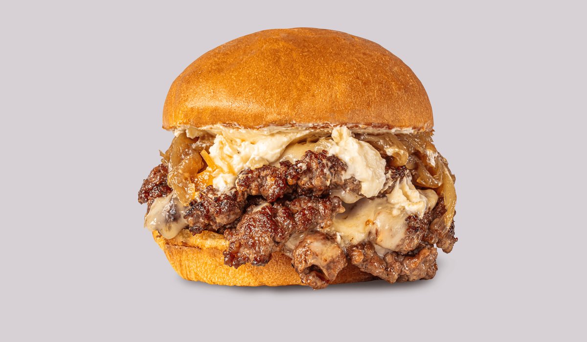 100% 'smash' junetina iz lokalnog uzgoja (75g), mozzarella, karamelizirani luk, kajmak, acceto *moguće je izbaciti sastojke, ali ne i dodavati nove