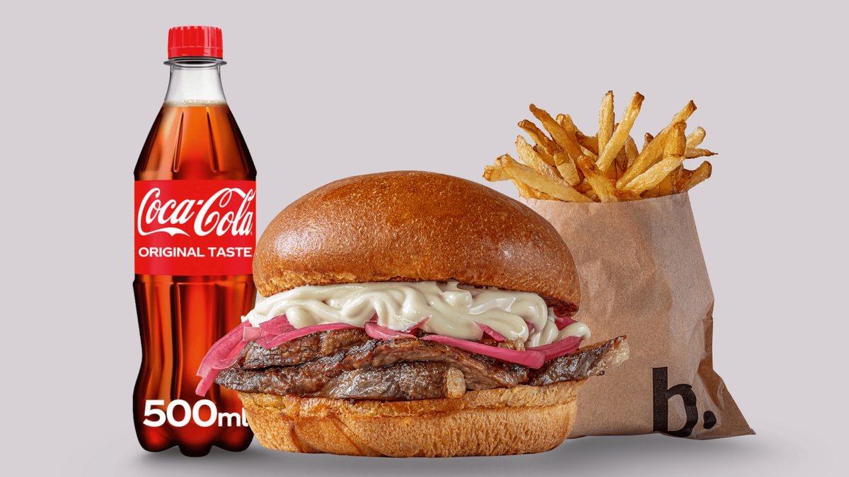 100% 'smash' junetina iz lokalnog uzgoja (150g), sir, panceta, kiseli krastavac, Bold umak, domaći pommes frites, Coca-Cola 0,5 l *moguće je izbaciti sastojke, ali ne i dodavati nove **slika je simbolična