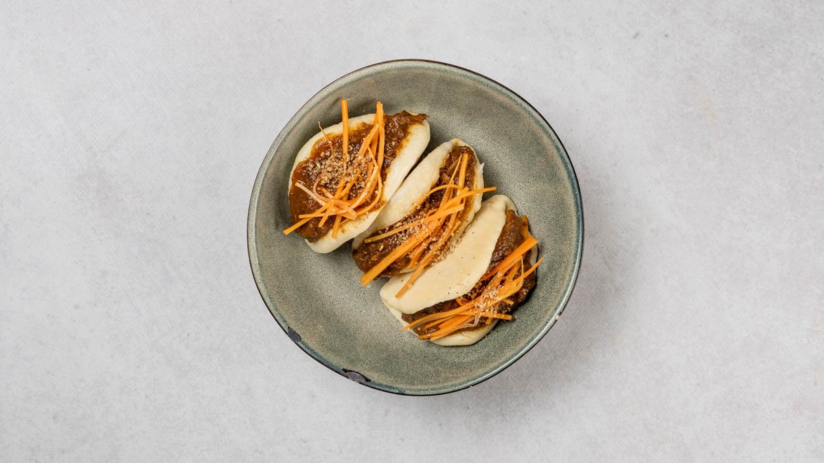 3x bao pecivo punjeno pašticadom, ukiseljena mrkva, tostirani bademi