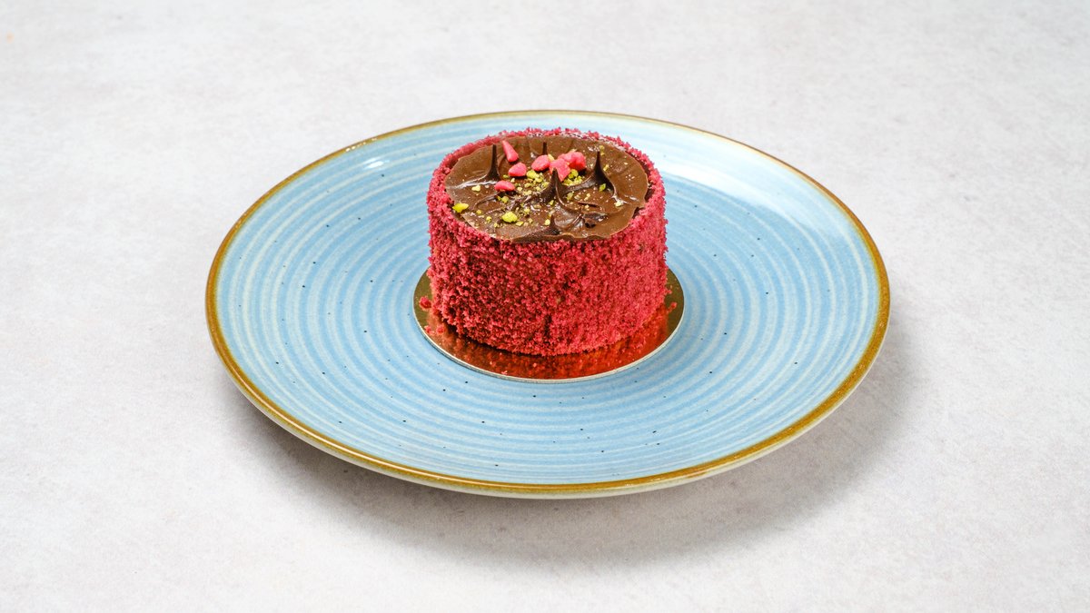 Pistacio krema punjena malinom na hruskavoj podlozi od pistacije