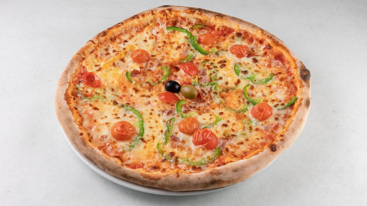 Umak od rajčice, sir, šunka, slanina, šampinjoni, vrhnje, luk *slika je simbolična