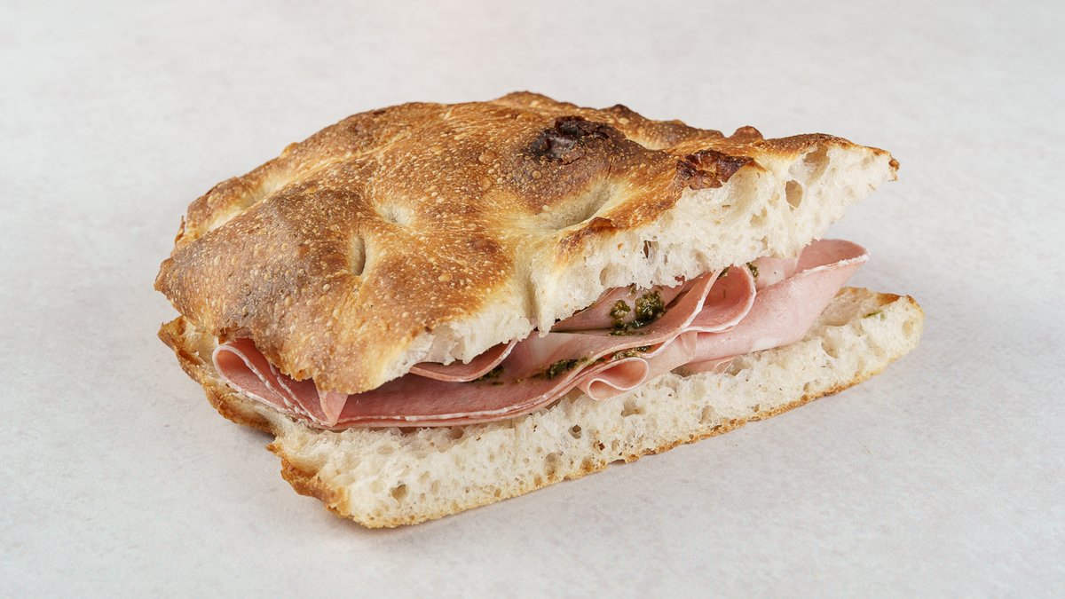 Focaccina by Boogie Bakery, mortadela Bologna IGP, pesto