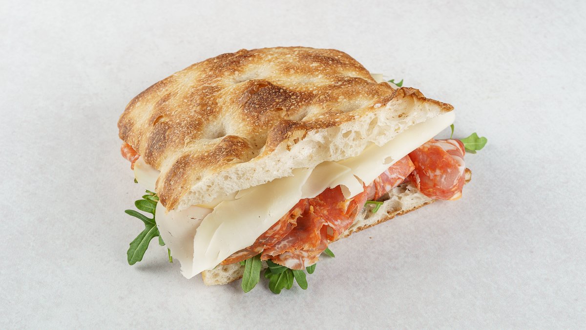 1x focaccia Bresaola, 1x focaccia salami picante, 1x focaccia cotto ala praga, 1x focaccia porchetta
