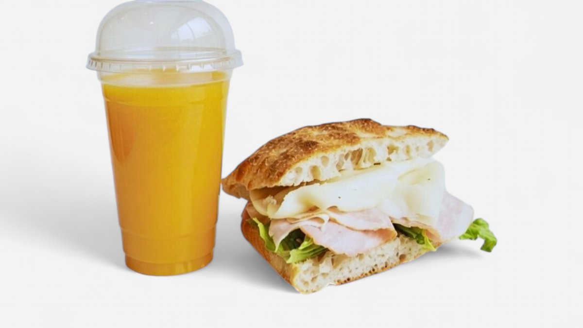 Focaccina sendvič Prosciutto cotto afumicato ala Praga +cijeđeni sok