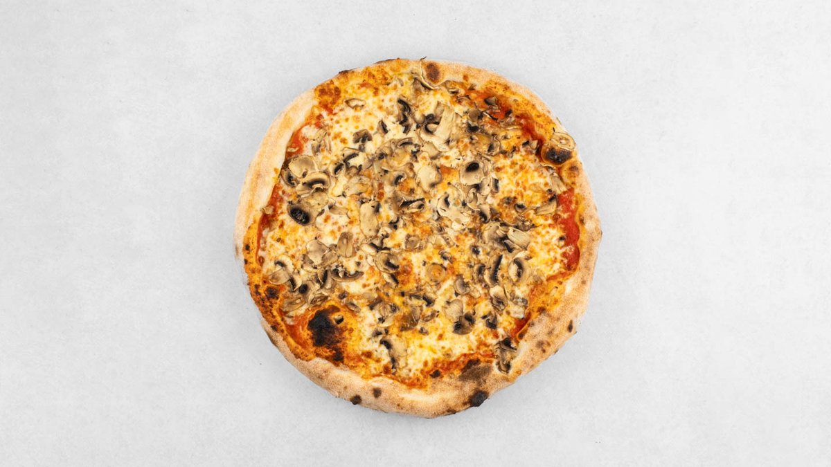 Pelat, mozzarella, edamer, šampinjoni, origano *slika je simbolična