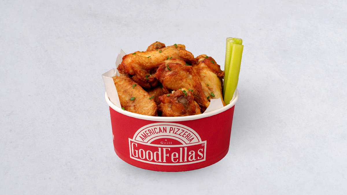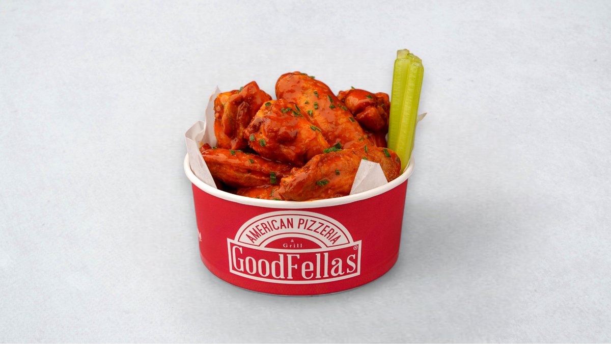 Pileća krilca, prženi kolutići luka, pommes frites, buffalo umak, BBQ umak sa strane, ranch umak sa strane, ketchup sa strane, cajun mix (1115g)