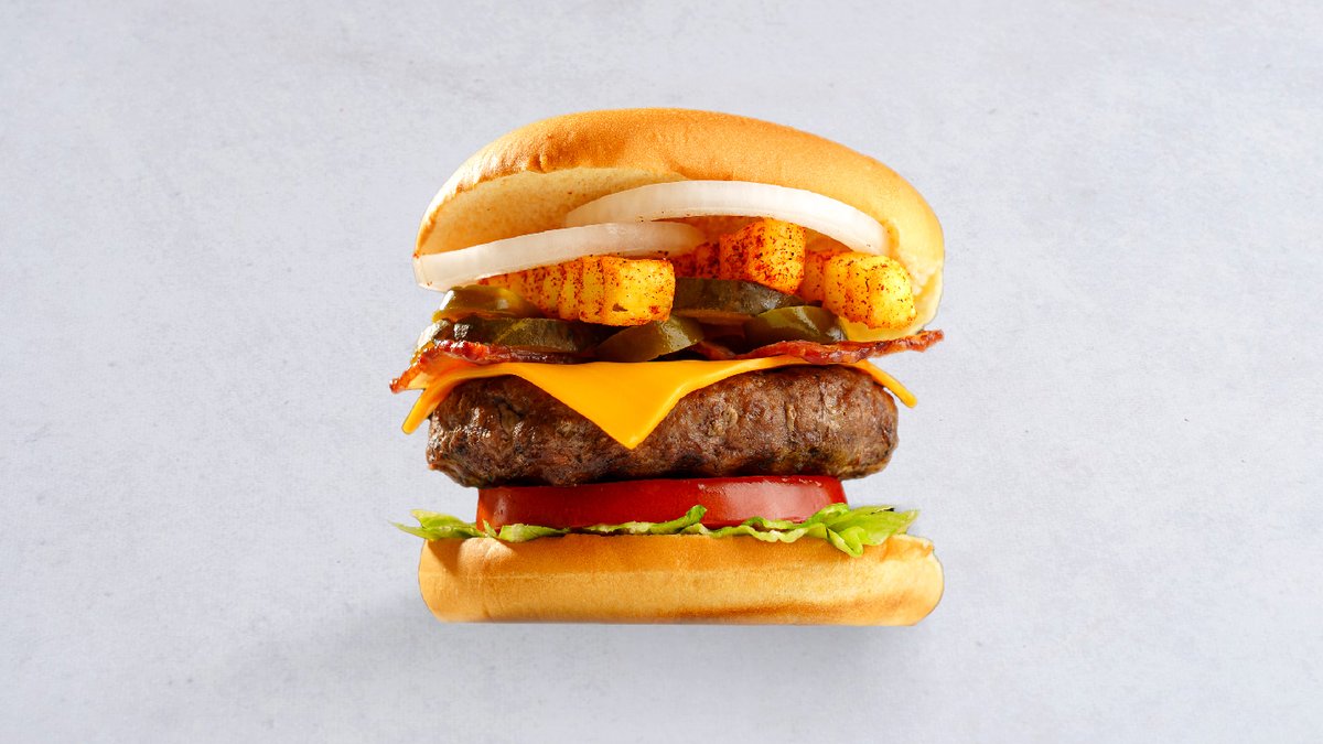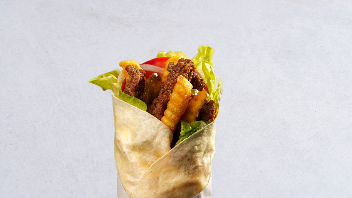 Juneće meso, luk, iceberg salata, rajčice, luk, jalapeno papričice, pommes frites, Ranch umak (626g)