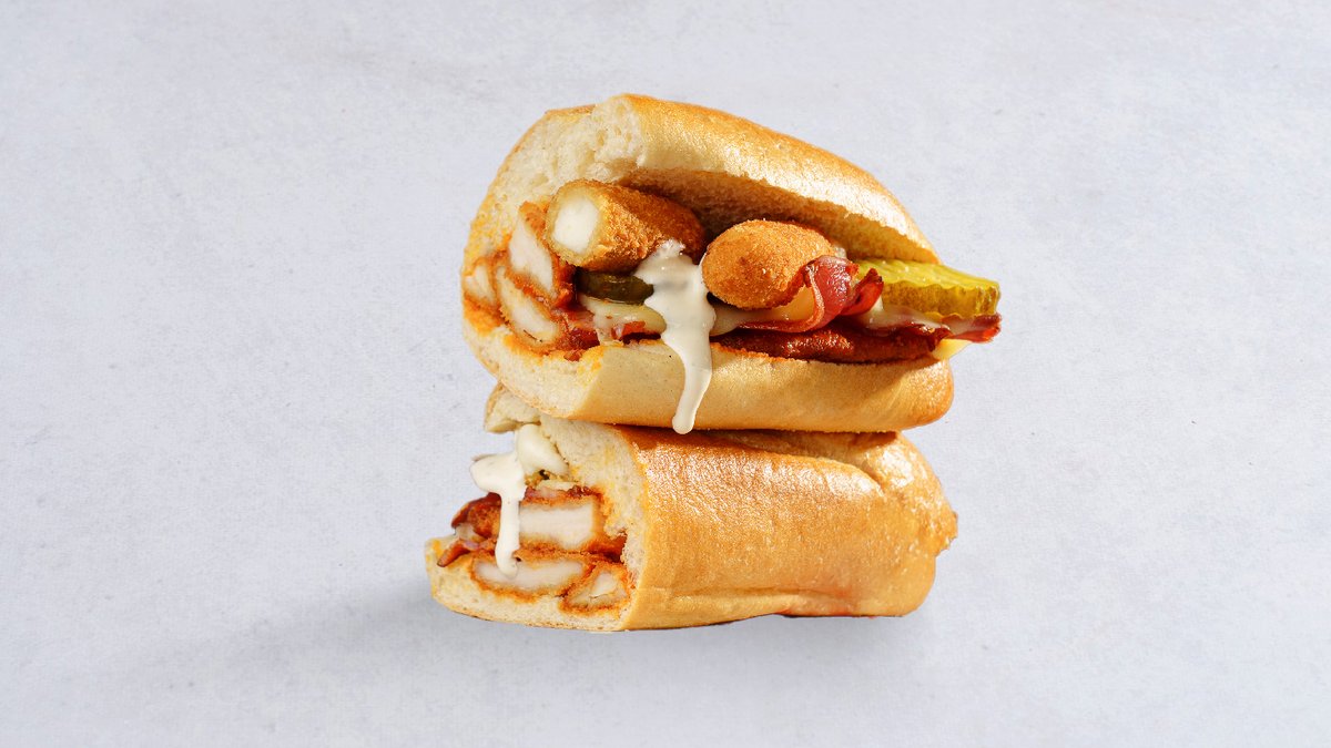 Sir, piletina, ranch umak, pommes frites, kolutići luka (549g)