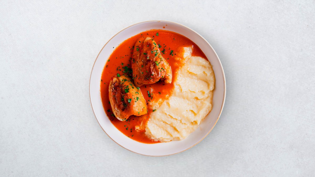 Punjena paprika s pire krumpirom, začini *slika je simbolična