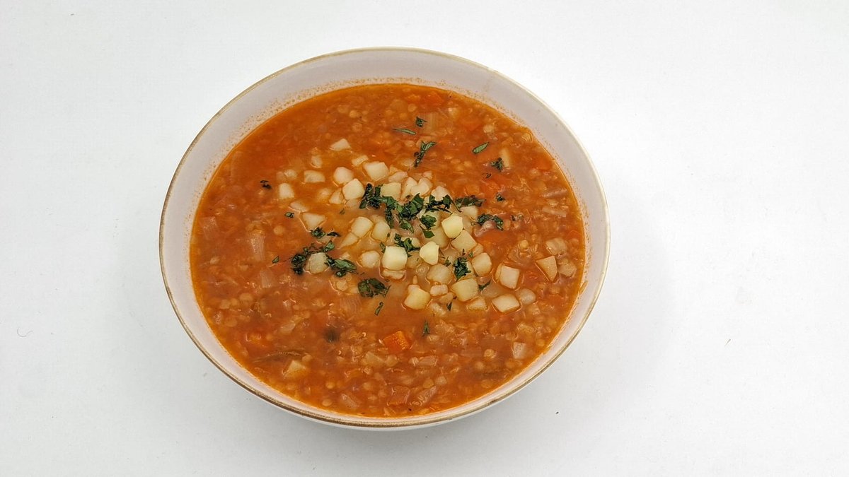 leća,krumpir,mrkva,poriluk,paprika,dvije šnite kruha