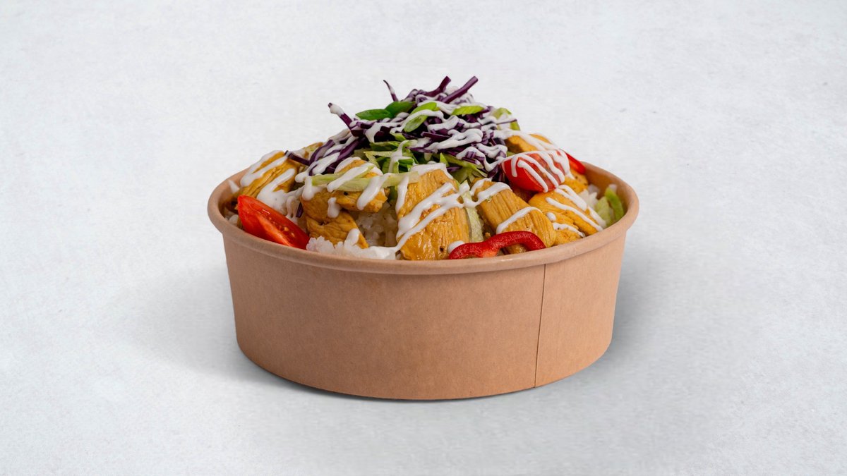 Riža, piletina, blagi umak, dodaci po izboru