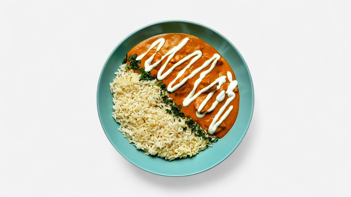 Crna riža, marinirani pileći file, batat, kukuruz, mini rajčica, luk, jalapeno papričice, vinski ocat, kopar umak (grčki jogurt, kopar, limeta, sol, papar, češnjak)