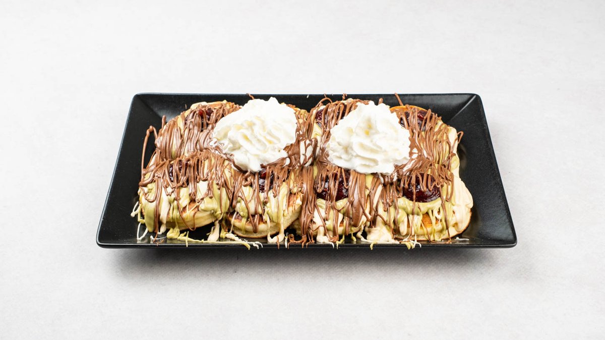 Mini američke palačinke, Nutella, brownies, Oreo keks/posip, Kinder čokoladica