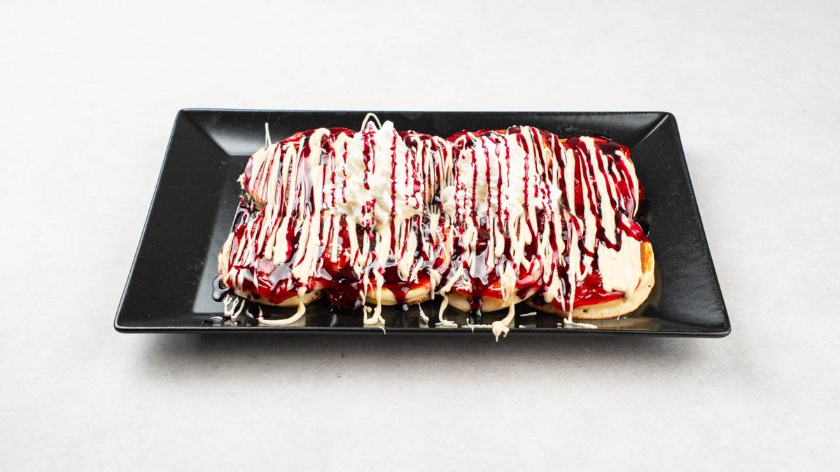 Mini američke palačinke, Lino Lada bijela, namaz od višnje, Amarena preljev