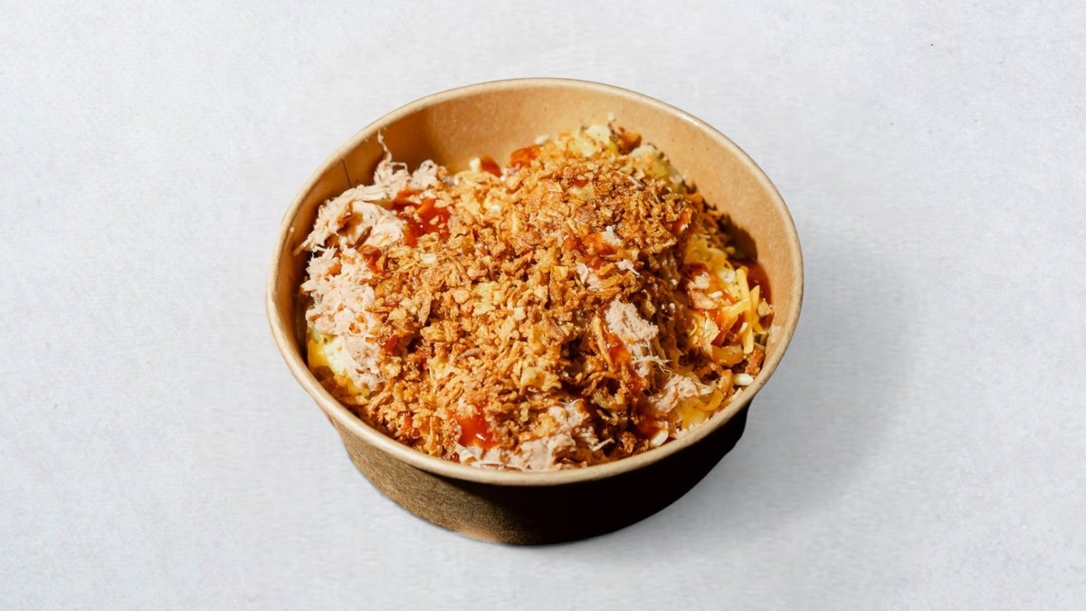 Krumpir prepun sočnih komadića trgane piletine, preliven kremastim ranch umakom i posipan cheddar sirom *slika je simbolična