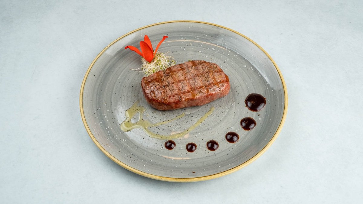 Juneći ramstek, sezonsko povrće, soja umak, sezam, kikiriki, mladi luk *slika je simbolična