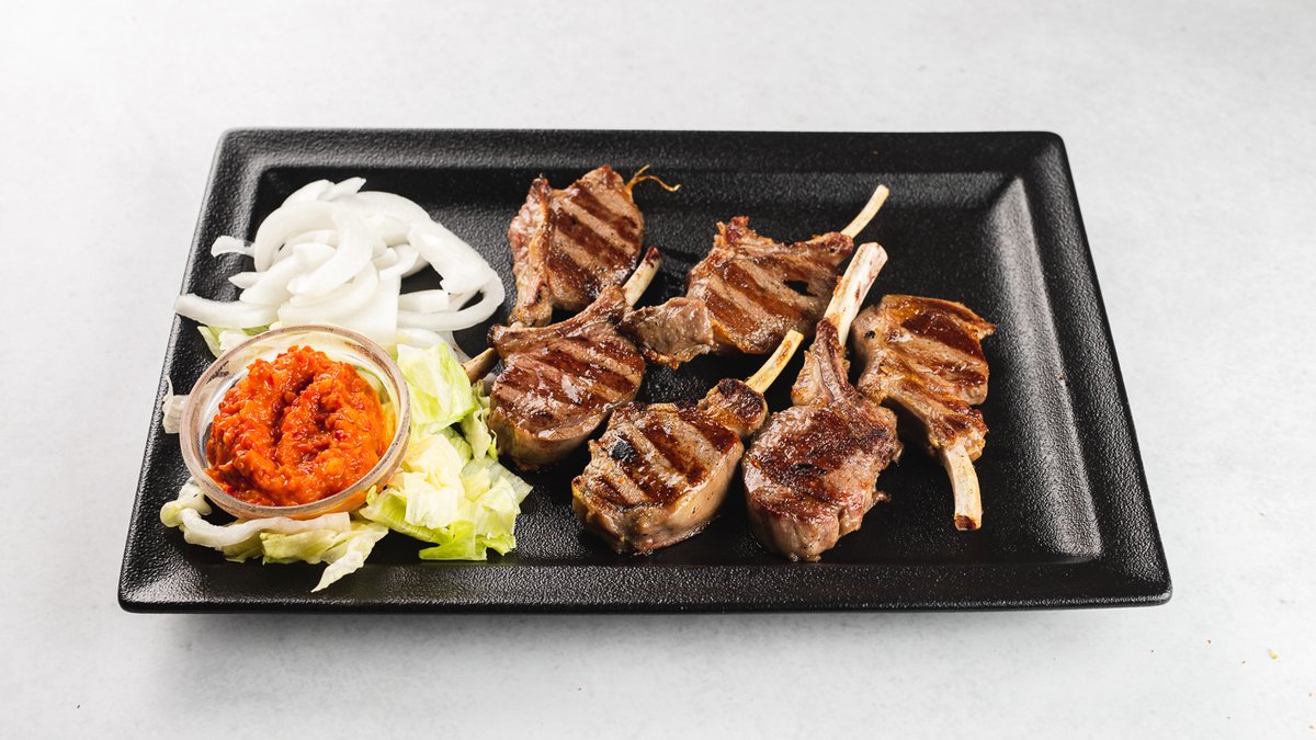 Janjeća rebra 500 g, mladi krumpir, mrkva, mladi luk, demi-glace umak s paprom *slika je simbolična