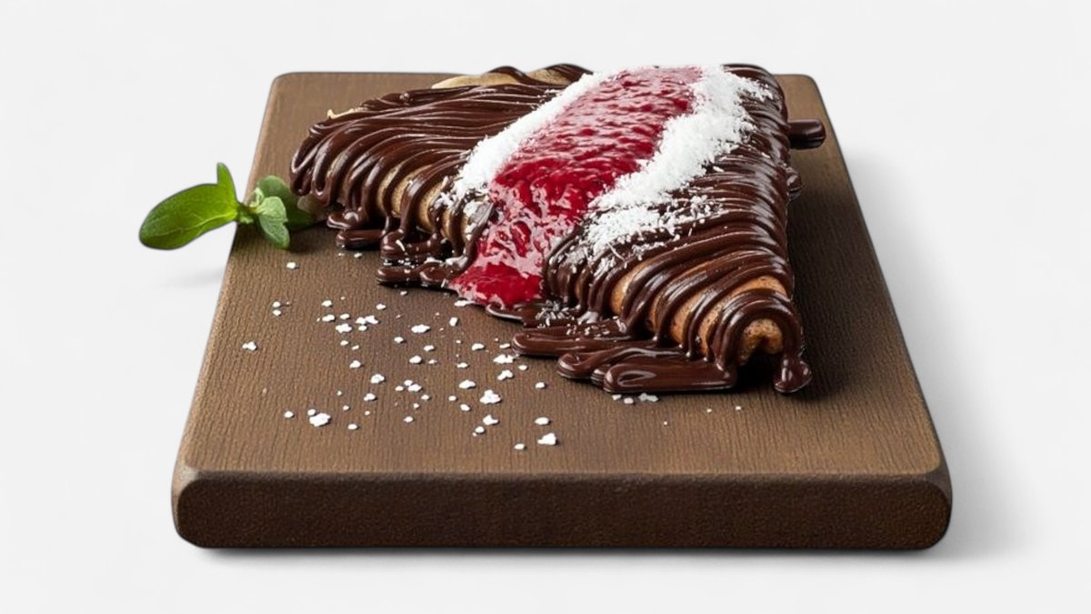 Veganska palačinka, vege namaz od tamne čokolade, nadjev malina, kokos *slika je simbolična