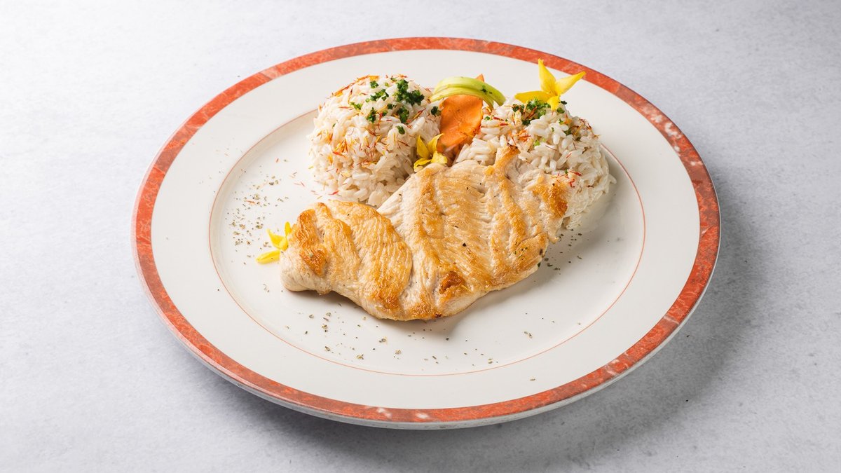 Naravni odrezak, meso po izboru, riža, tartar, limun, kruh *slika je simbolična