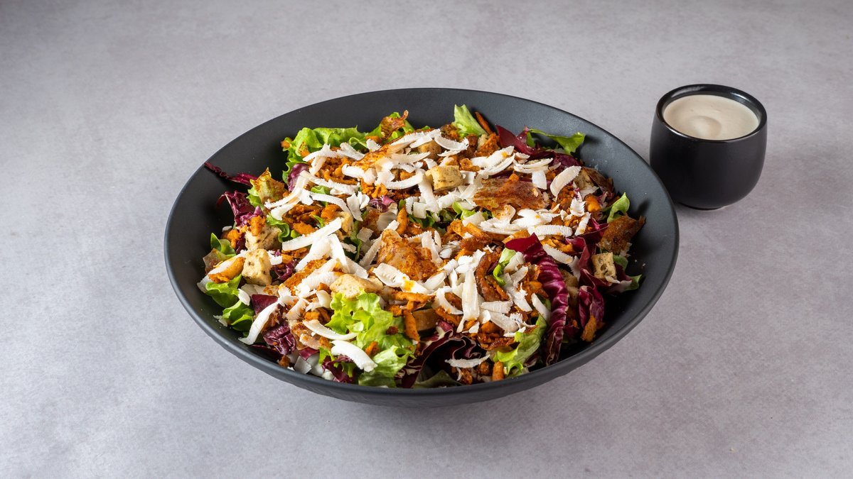 Piletina, slanina, iceberg salata, matovilac, rikola, ribani sir, krutoni, dresing *slika je simbolična