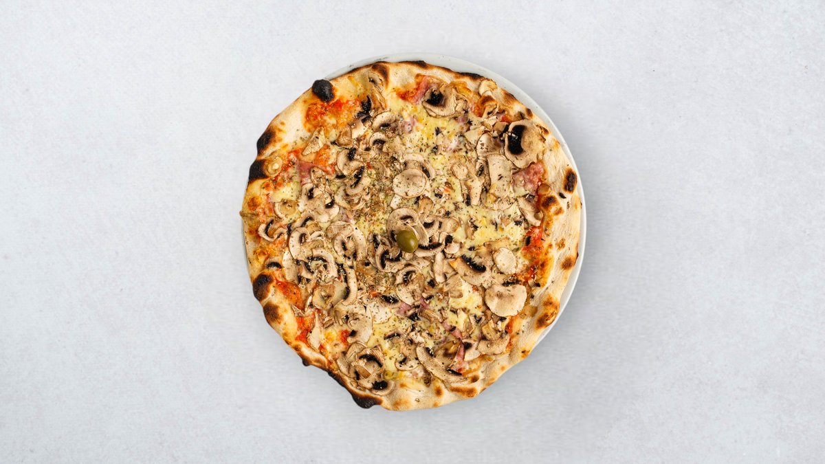 Tijesto, umak od rajčice, sir, šunka, šampinjoni Napolitana stil, 30% manje mase, isti volumen — lagana i prozračna