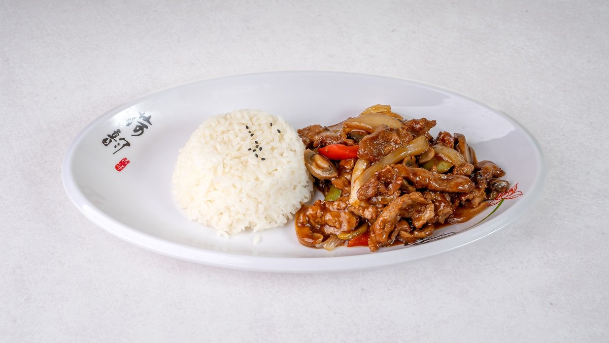 Govedina, zelena paprika, luk, riža