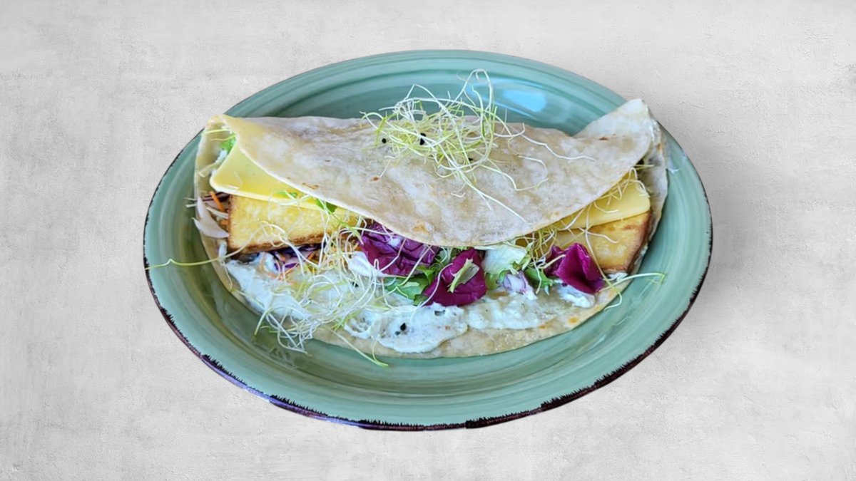 Grilani dimljeni tofu, veganski sir, tartar umak i povrće u tortilji *vegan