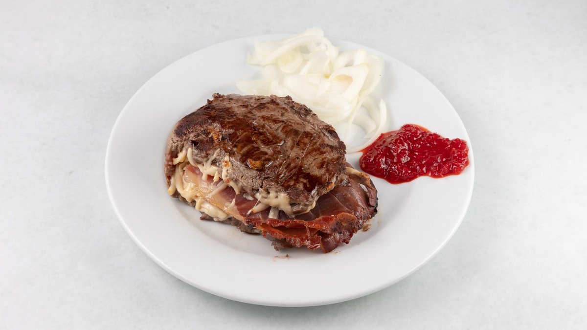 100% juneće meso punjeno s 3 vrste sira i 3 vrste paprike (340g), suho dimljeno juneće meso, pola lepinje
