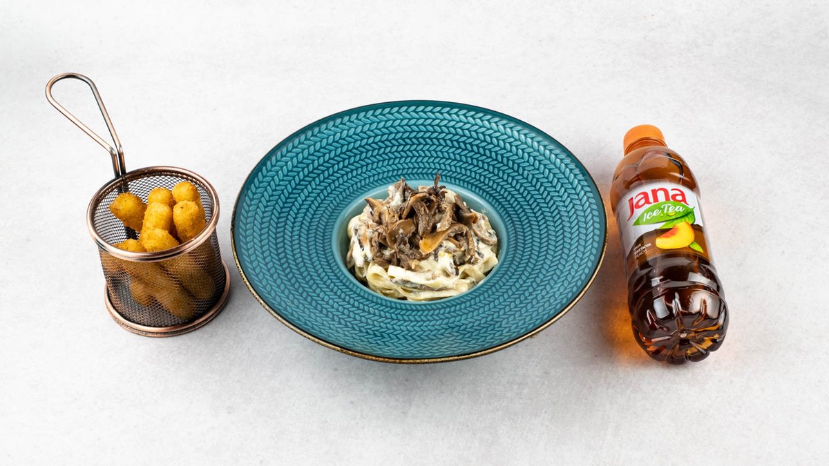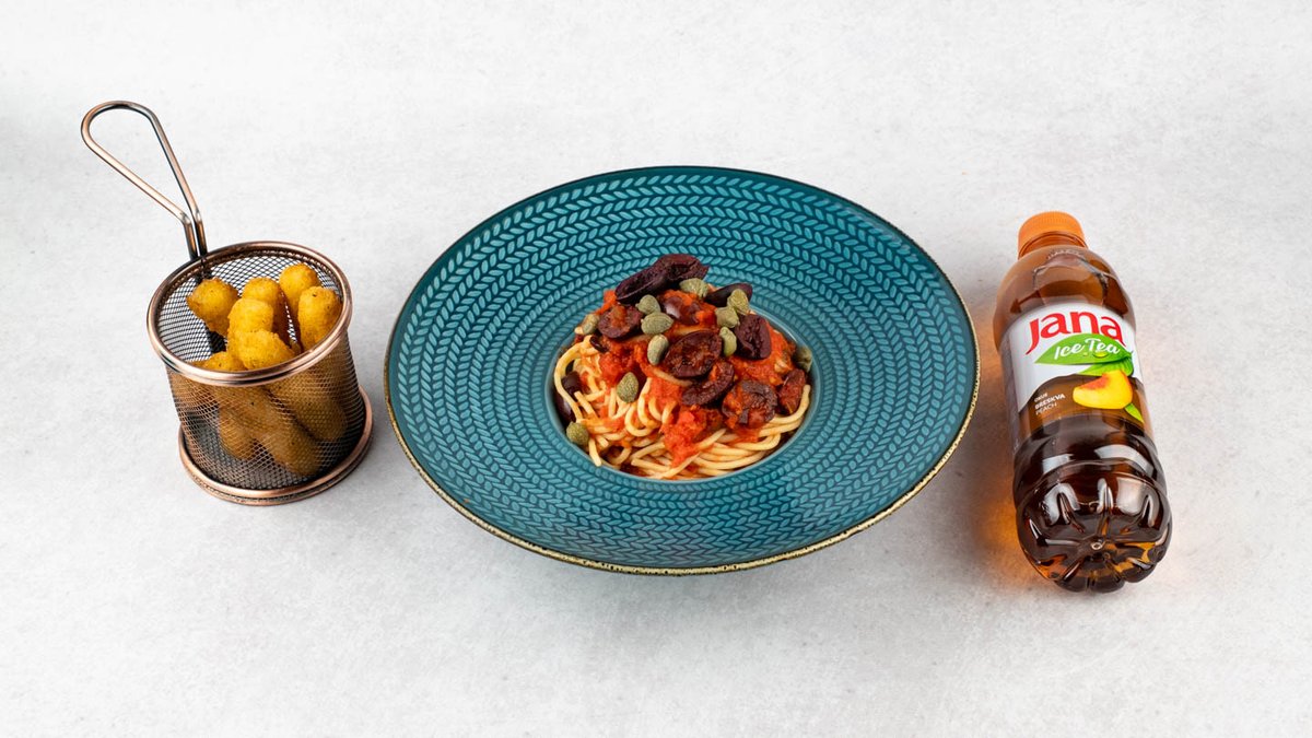 Odaberi tjesteninu, umak, dodatke i posip + prilog + sok *slika je simbolična