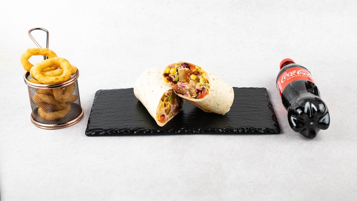 Odaberi tortillu, umak i dodatke + prilog + sok