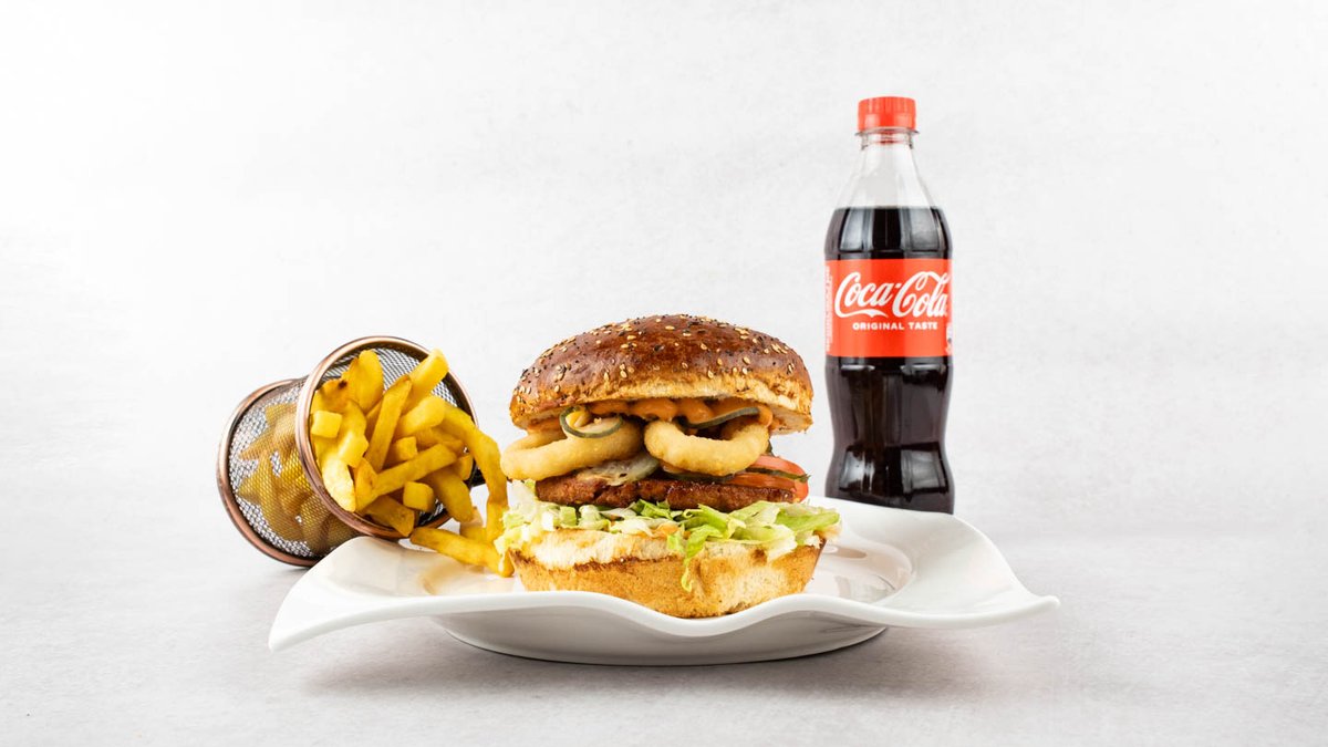 Složi svoj burger, dodaci po izboru + prilog + sok
