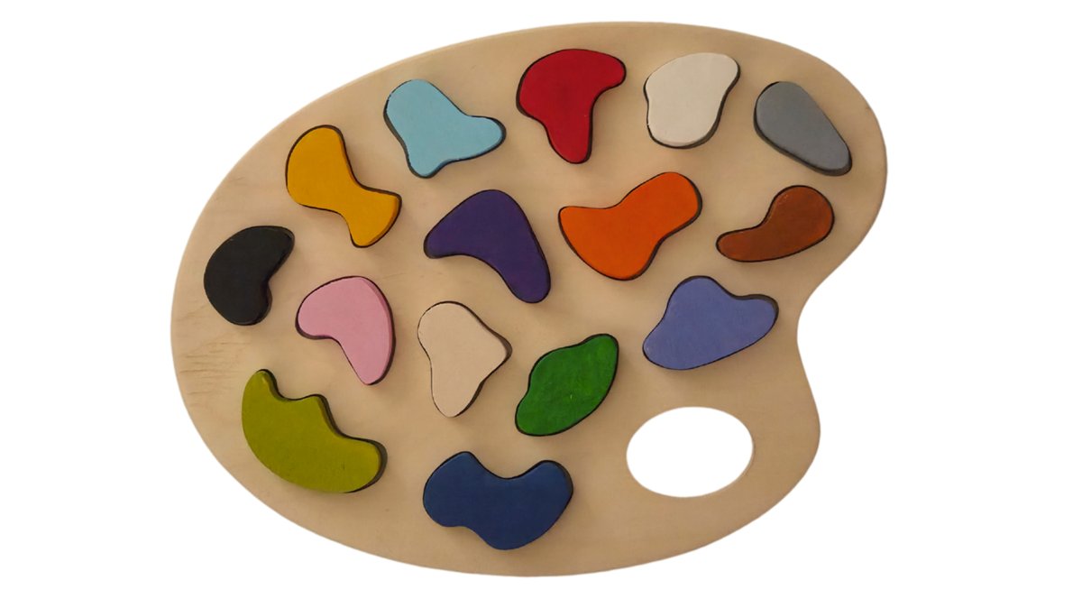 Drvena umetaljka / paleta boja s 15 različitih boja i nazivima