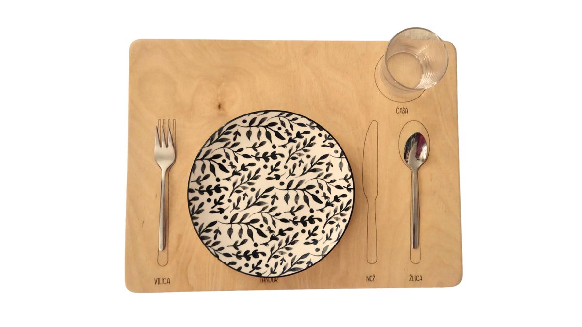 Drvena podloga za jelo / učenje slaganja pribora
