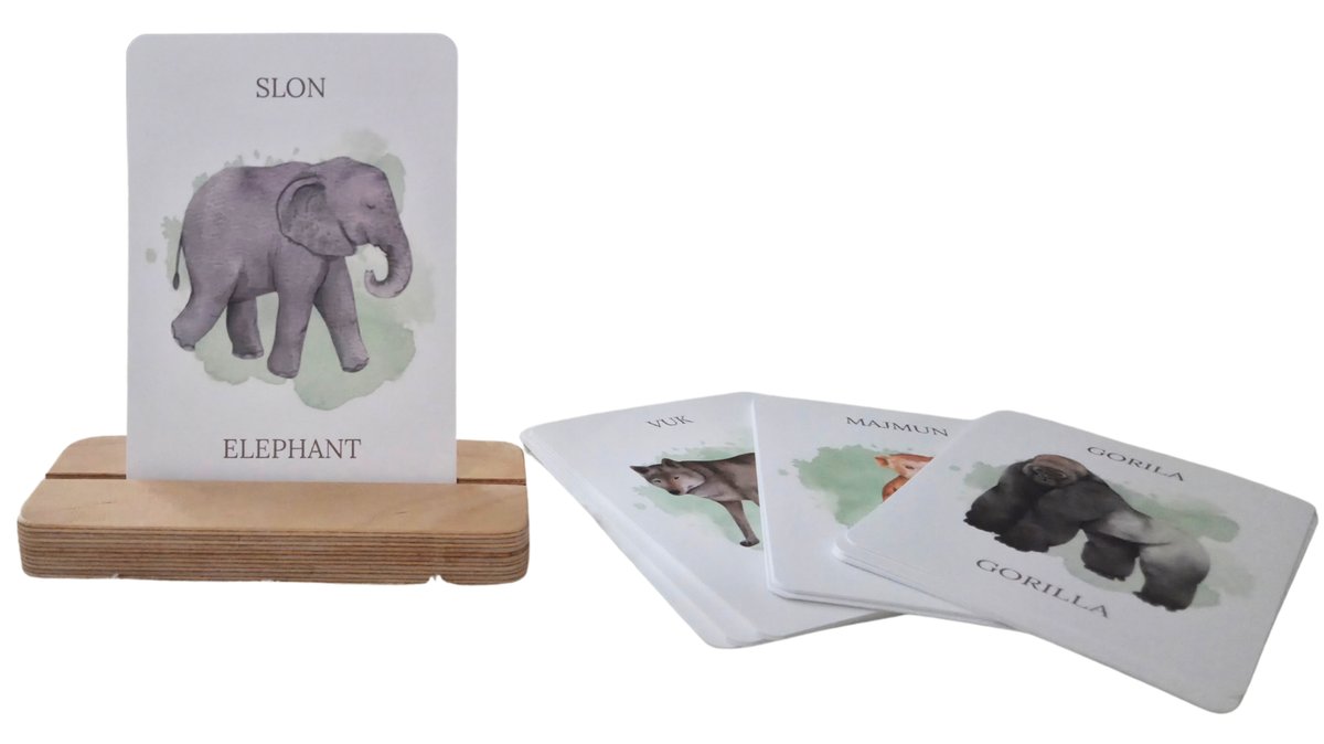 Flashcards HRV i ENG / Kartice dvojezične / Životinje 24kom + drveni stalak