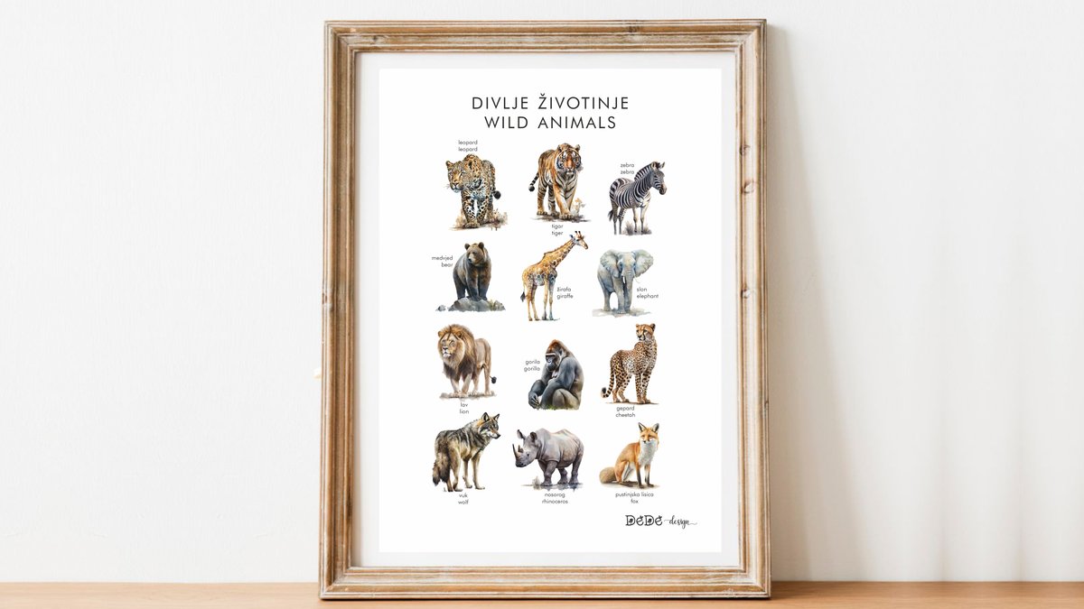 Plakat A3 (30x40cm ) DIVLJE ŽIVOTINJE / hrv. i eng. nazivi