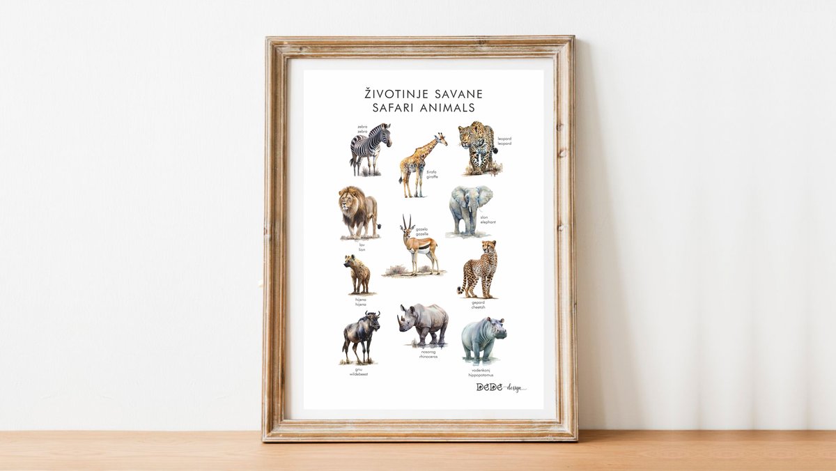 Plakat A3 (30x40cm ) ŽIVOTINJE SAVANE / hrv. i eng. nazivi